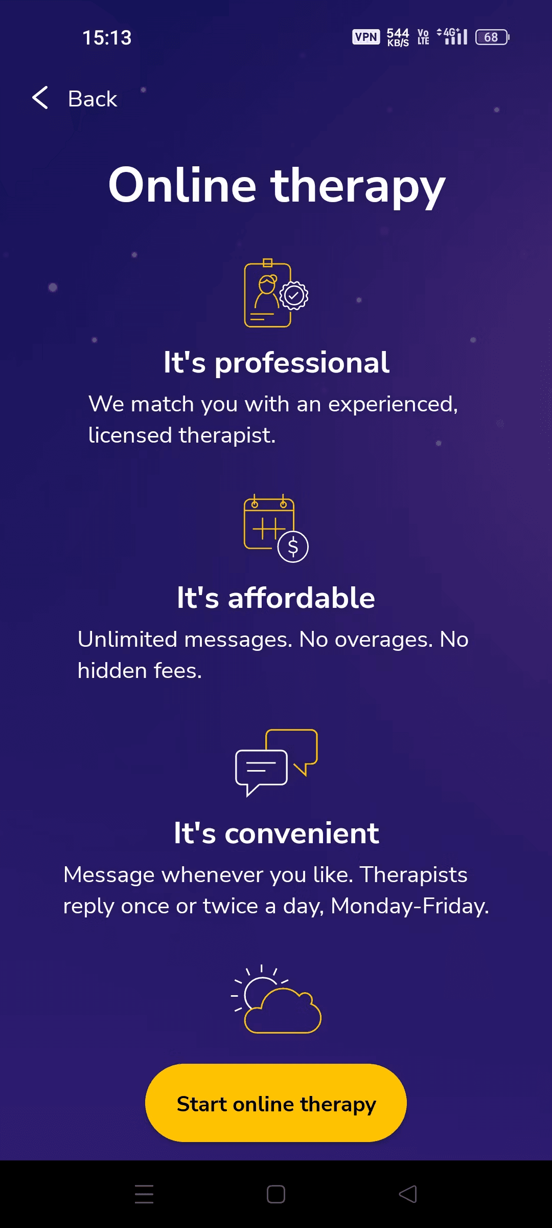 | Expert therapists tailored to you | iOS & Android apps |